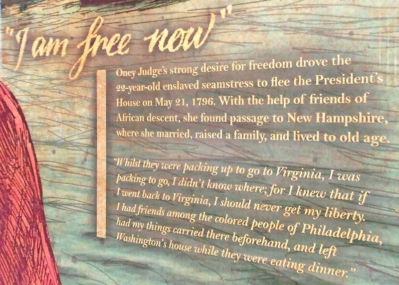 For Oney, the punishment of recapture was not as terrifying as returning to the south. In 1796, just three years after the passing of the Fugitive Slave Law, she discovered the Washingtons’ plan to gift her to Eliza, Martha’s granddaughter, as a wedding present. On May 21st, while the Washingtons were hosting a dinner party, Oney quietly left the President’s House and walked toward the Delaware River. There, she took a boat operated by free Black people to Portsmouth, New Hampshire.