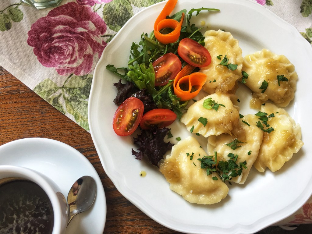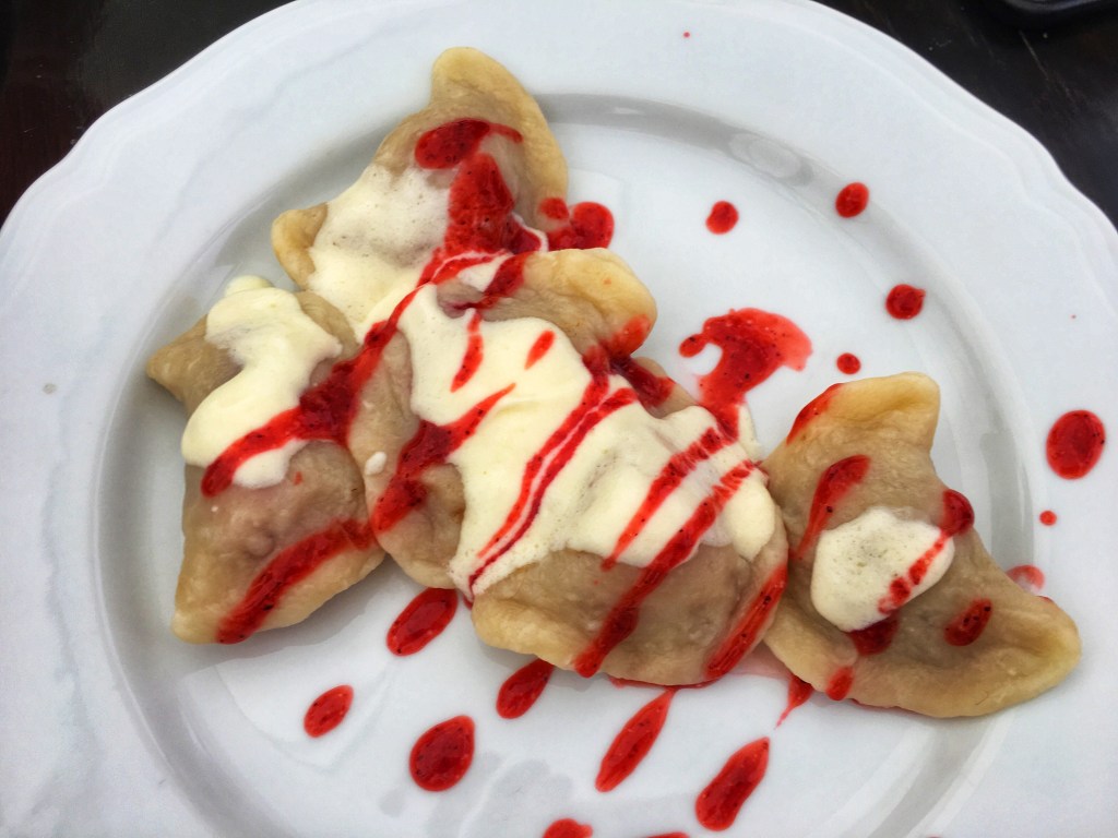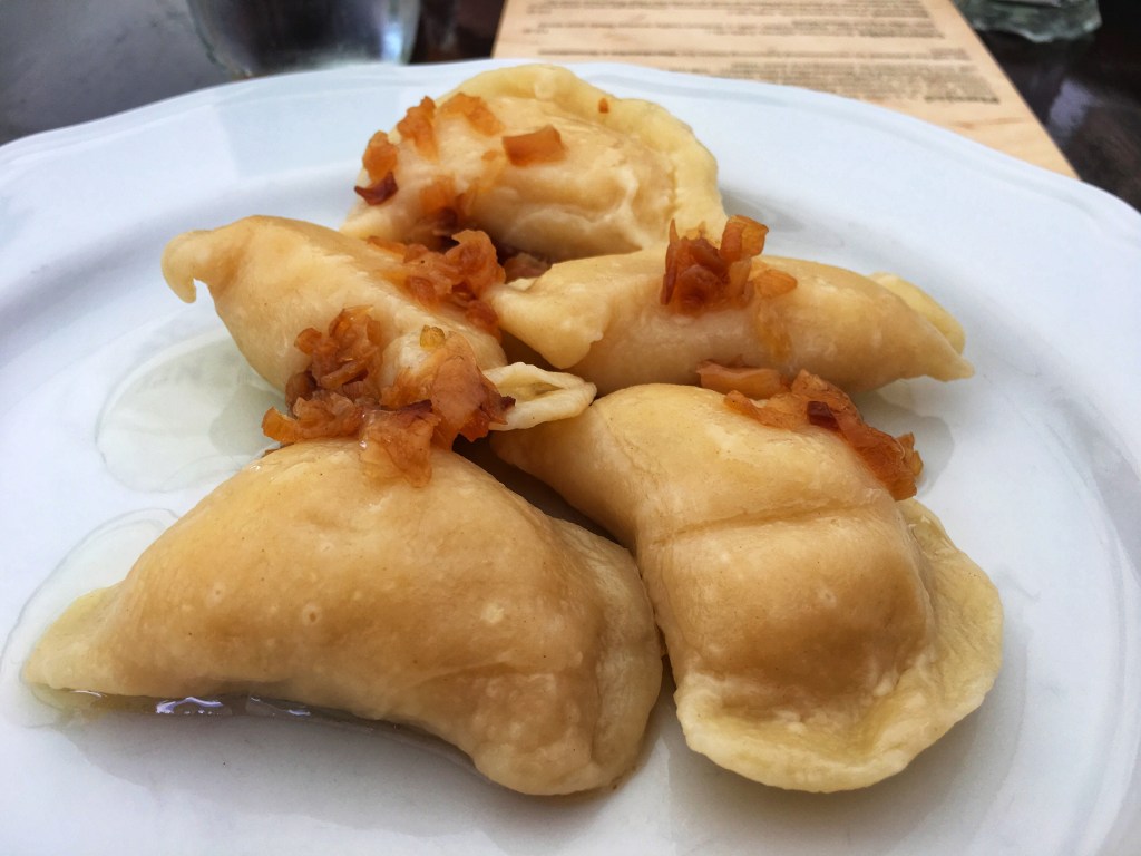 I absolutely love this restaurant. I ordered my favorite pierogi–Ruskie–with a side of the blue cheese sauce (out of this world).