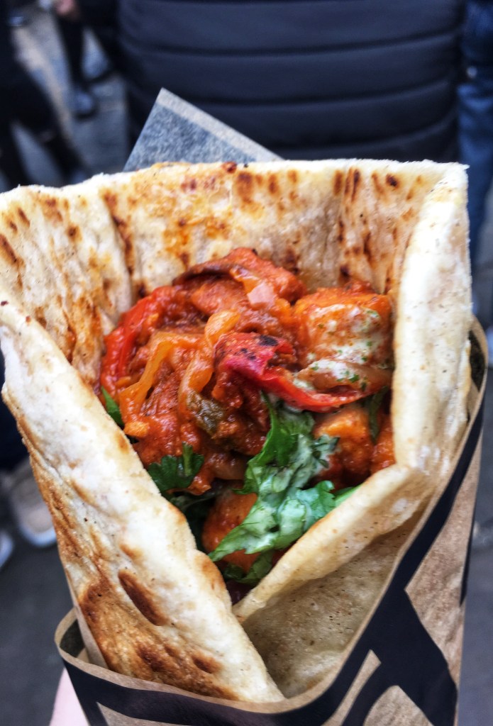 My apologies for the blurry photo but I only snapped one picture before eating this amazing wrap. We stopped at Camden Market on Saturday afternoon and the entire place was absolutely packed with people. Thankfully I was able to find the Indian Kati stand and this wrap was incredible. Masala paneer in a naan wrap is all you need in the world.