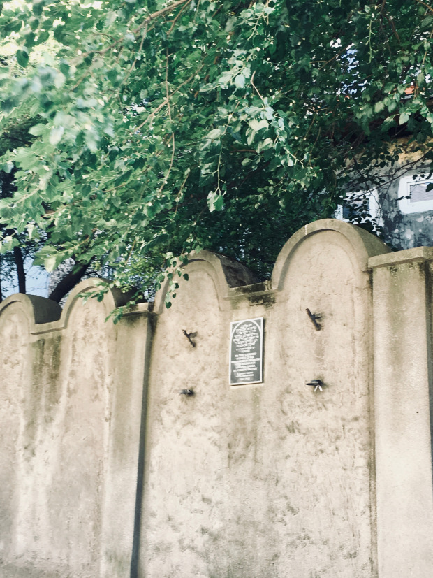 The last remaining portion of the Kraków Ghetto wall. This twelve meter long fragment of the original ghetto barrier displays a plaque placed there in 1983 which says: “Here they lived, suffered, and died at the hands of the German torturers. From here they began their final journey to the death camps.”