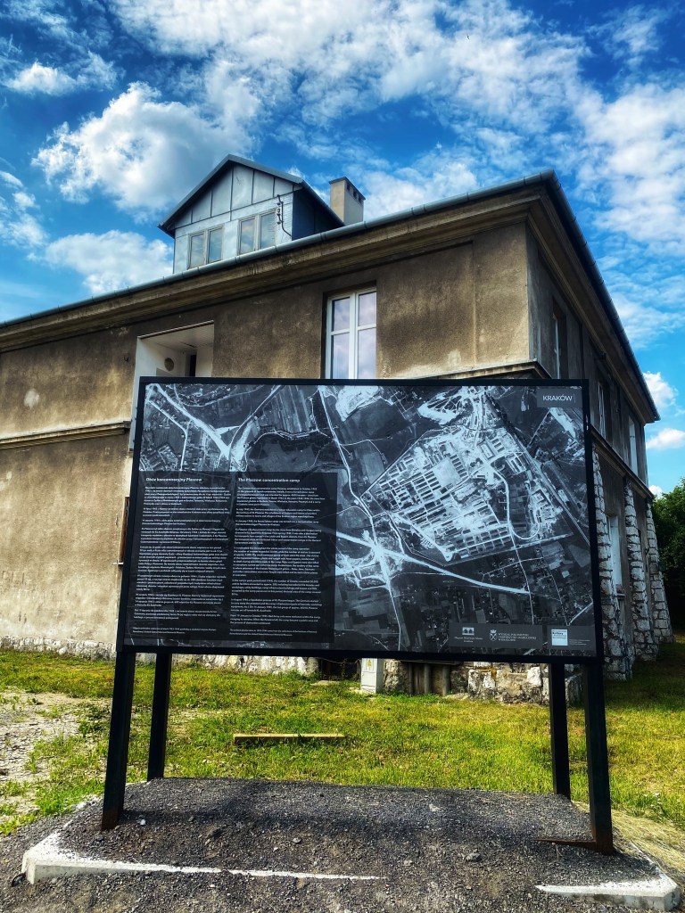 “Today almost nothing remains of the sprawling 80-hectare concentration camp in Płaszów – a district of Podgórze. In comparison to other Nazi prison camps, Płaszów was extremely well dismantled and has been the subject of very little historical excavation or on-site documentation until only recently (in summer 2017 archaeological works were undertaken in several parts of the camp). Those private homes which were commandeered by the Nazis and incorporated into KL Płaszów were returned to their owners after the war and today sit on the fringes of the former camp as inauspiciously as any other homes in the area. Large apartment blocks have been built on top of other parts of the former camp. As a result it is very difficult to grasp the scope of the camp or imagine what it looked like during the war, though an outdoor exhibit of 19 archival photographs with brief historical information now offer visitors some clues about the camp’s layout. Installed in November 2017, these sparse photo plaques are the first exhibits on the territory of the camp, which is overseen by the Kraków Museum. [Plans for a permanent exhibit on the camp’s history are in development.]”