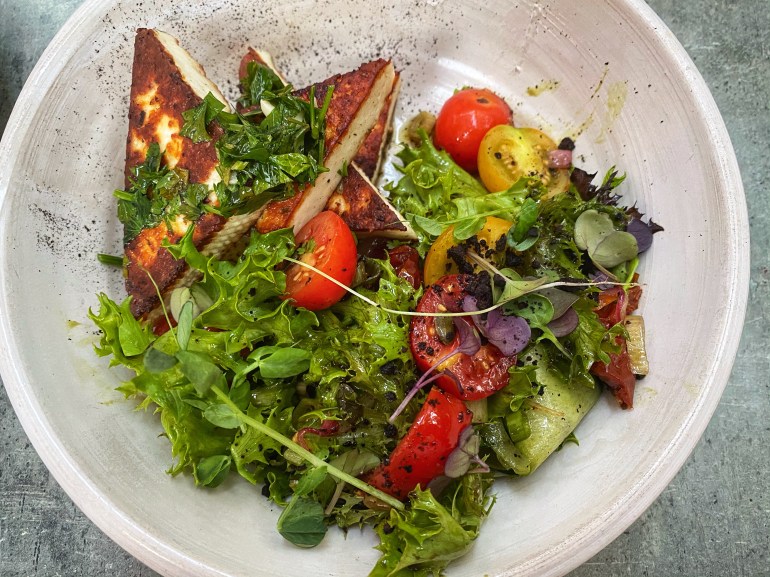 This feminist vegetarian cafe is one of my favorite spots in the city. Their restaurant is LGBTQIA+ friendly space (important in a country currently fighting for equal rights), has a small outdoor area and a full menu of homemade meals including this veg shakshuka and pickles.