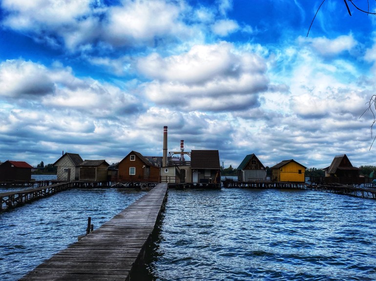 Lake Bokodi is located west of Budapest and surrounded by two villages–Bokod on the west and Oroszlány to the east. The two miles of “floating houses” are actually small fishing cottages suspended over the lake.