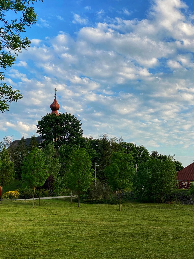 Without a real plan in Kolontár, we chose to just drive around the small village. I knew that two streets were destroyed by the sludge, so we kept our eyes out for new houses that may have been built to replace them. Maybe this is it? we kept asking each other. We saw a church peeking through the treetops and Heather decided to drive in that direction.