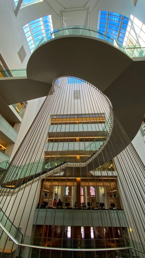 The breathtaking Oodi library in Helsinki is all the heart emojis and what dreams are made of for how you’d want your library space to look and feel. Oodi invites patrons to “meet friends, create art, read, and relax” and includes spaces to read, workstations, studies, event space, an urban workshop, and a number of other services.Intentionally designed as an inclusive space with representation and input from the community of Helsinki, the library is a beautiful building with gorgeous views of the city and outdoor space. Swoon.