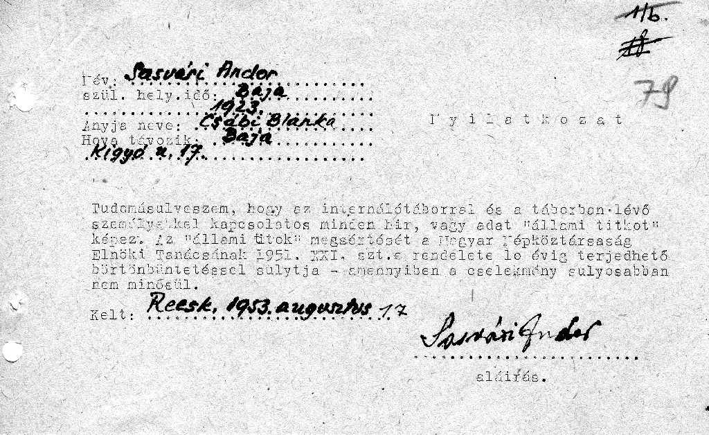 “Regarding our alleged crimes, more than a thousand residents of the camp were divided into different groups. The larger groups included the social democrats – mostly old trade unionists, strike leaders who could not get used to the fact that they had to serve the interests of the state instead of the workers; old staff officers – who defected to the Russians in 1944 and imagined that they could organize an independent Hungarian army; functionaries belonging to different parties, (…) kulaks who wanted to disappear so that they could take their land, and poor peasants who were appointed as kulaks in order to disappear; so-called bad workers who were taken away to frighten their co-workers, and the best workers of the larger factories who were taken away to frighten the workers even more.”